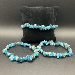 Type bijoux : Bracelet Pierre(s) : Apatite Qualité : A+ Couleur(s) : Bleu Apparence : Eclats / Polies Diamètre (en cm) : 16 – 18 cm Photo(s) non contractuelle(s)UGS : BB15