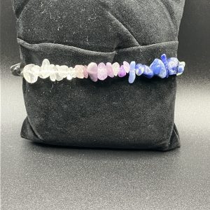 Type bijoux : Bracelet Pierre(s) : 7 Chakras Qualité : A Pierres : Améthyste - Calcédoine Bleue - Sodalite - Citrine Chauffée - Péridot - Grenat Rouge - Cornaline Apparence : Eclats / Polies Diamètre (en cm) : 16 – 18 cm Photo(s) non contractuelle(s)UGS : BB01