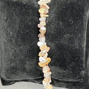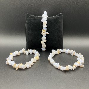 Type bijoux : Bracelet Pierre(s) : Agate blanche Qualité : A Couleur(s) : Blanc Apparence : Eclats / Polies Diamètre (en cm) : 16 – 18 cm Photo(s) non contractuelle(s)UGS : BB04