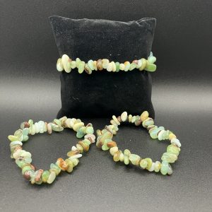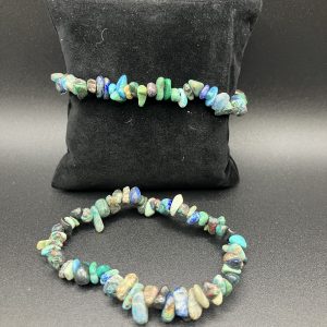 Type bijoux : Bracelet Pierre(s) : Amazonite Qualité : A Couleur(s) : Bleu / Vert Apparence : Eclats / Polies Diamètre (en cm) : 16 – 18 cm Photo(s) non contractuelle(s)UGS : BB11