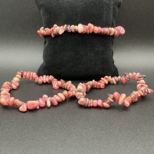 Type bijoux : Bracelet Pierre(s) : Rhodonite du brésil Qualité : AA Couleur(s) : Rose Apparence : Eclats / Polies Diamètre (en cm) : 16 – 18 cm Photo(s) non contractuelle(s)UGS : BB43