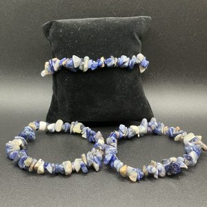 Type bijoux : Bracelet Pierre(s) : Sodalite Qualité : A Couleur(s) : Bleu Apparence : Eclats / Polies Diamètre (en cm) : 16 – 18 cm Photo(s) non contractuelle(s)UGS : BB44