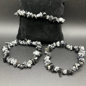 Type bijoux : Bracelet Pierre(s) : Obsidienne Flocon de Neige Qualité : A Couleur(s) : Noir Apparence : Eclats / Polies Diamètre (en cm) : 16 – 18 cm Photo(s) non contractuelle(s)UGS : BB35