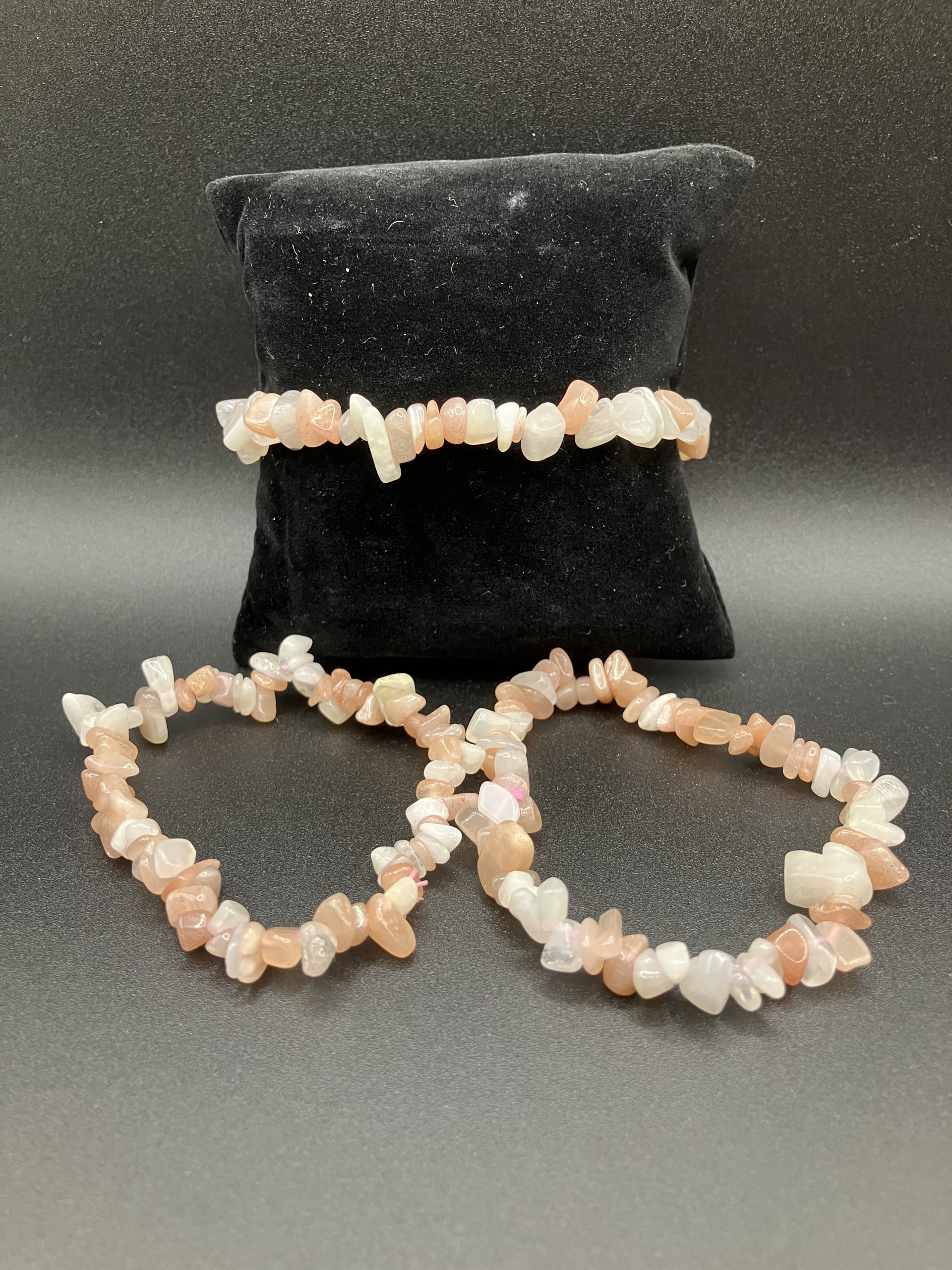 Les pierres de lune se présentent sous diverses couleurs et peuvent ainsi être associées lors de l’assemblage d’un bracelet ou d’un collier.